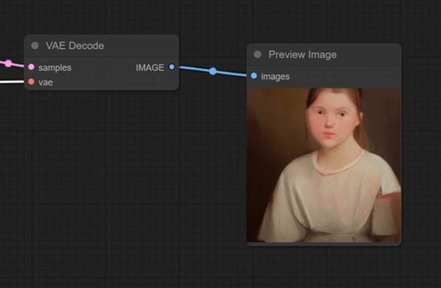- Unet阶段:ksampler节点,负责在潜空间生成图片。